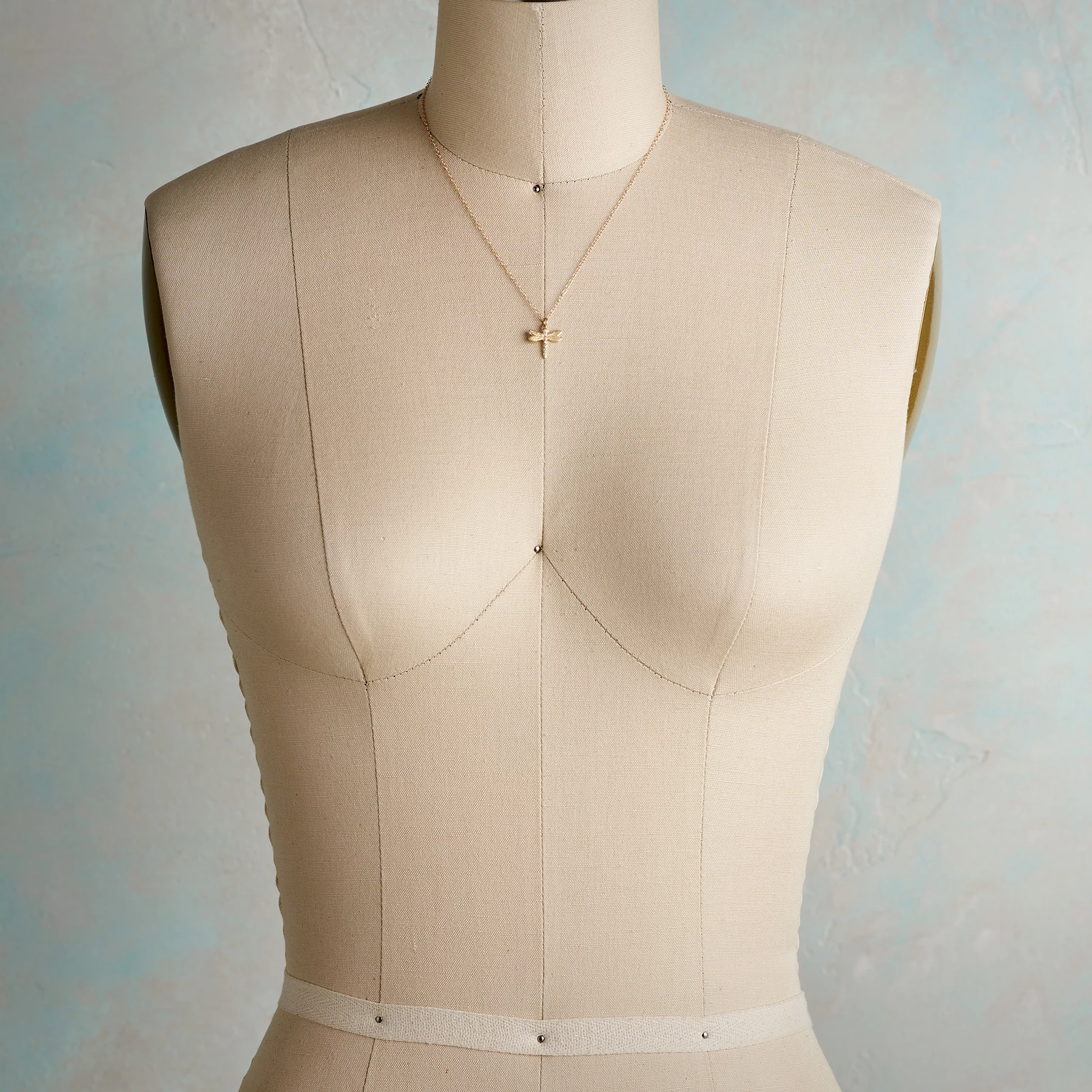 Handmade by Victoria Cunningham, this 14kt gold necklace celebrates the power of transformation, light and joy with a diamond-kissed dragonfly forever in flight. 14kt gold spring ring clasp. Made in the USA. 16″L; 1/2″ drop.