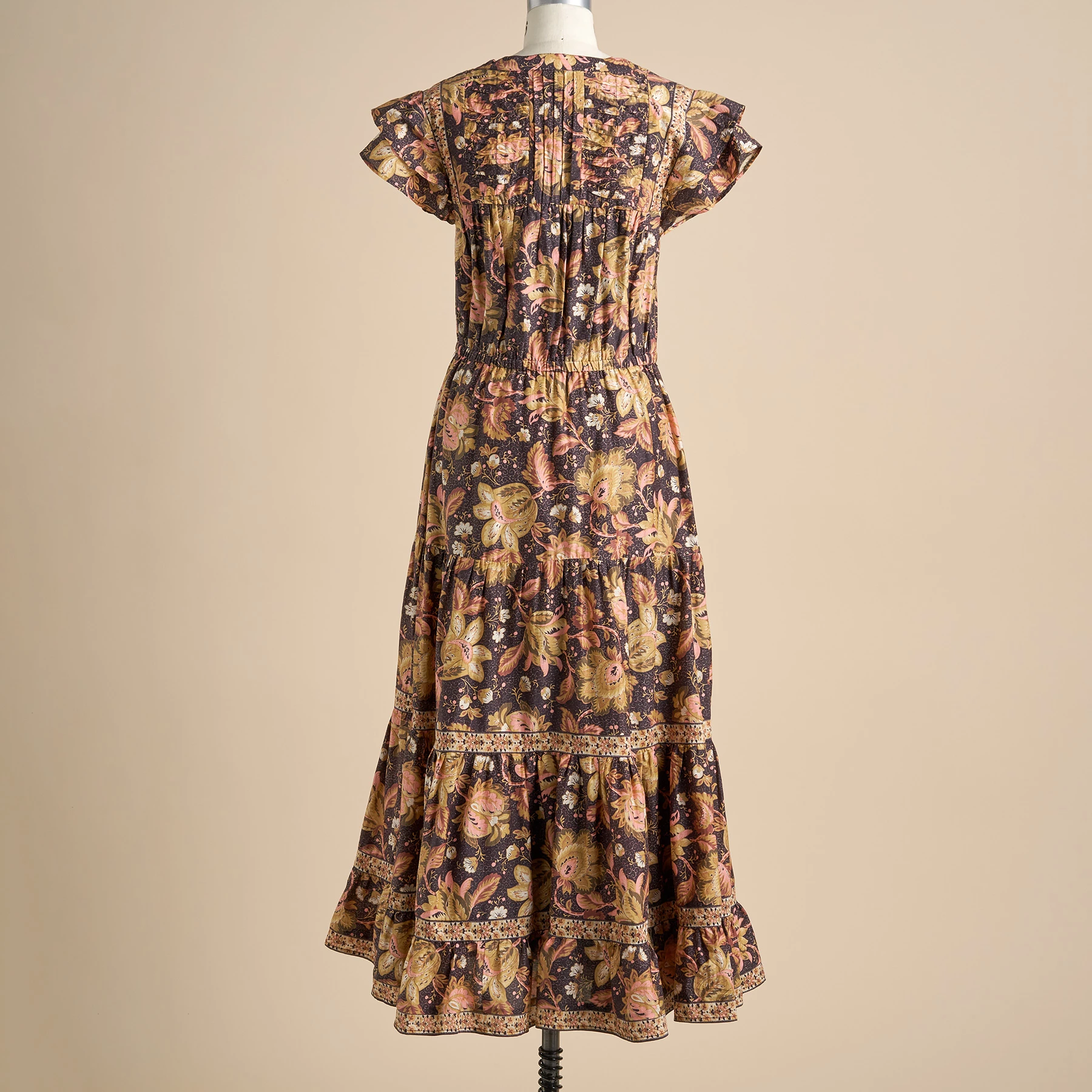 Special floral prints with contrast borders grace our outstanding pop over dress with novelty pin tucking details at the yoke. Double flutter sleeves, encased elastic waist and fully lined, tiered hem. Cotton/silk. Hand wash. Imported. Exclusive. Sizes XS (0–2), S (4–6), M (8–10), L (12–14), XL (16–18), XXL (20–22). Approx. 52″l. Belt sold separately.