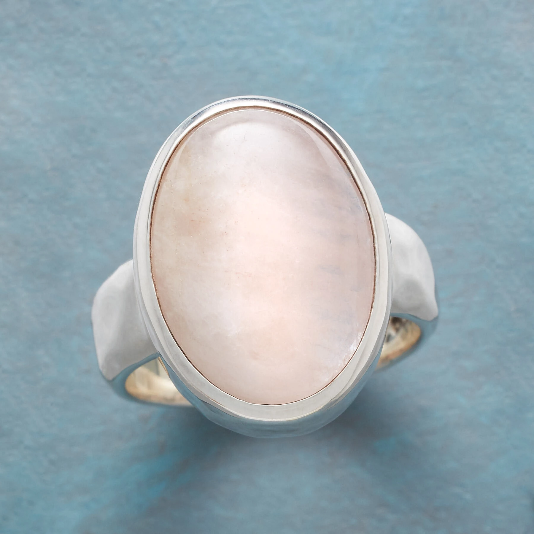 Hammered and polished by hand, sterling silver embraces morganite, its gentle blush a quiet beauty with great depth. Exclusive. Whole sizes 5 to 9.