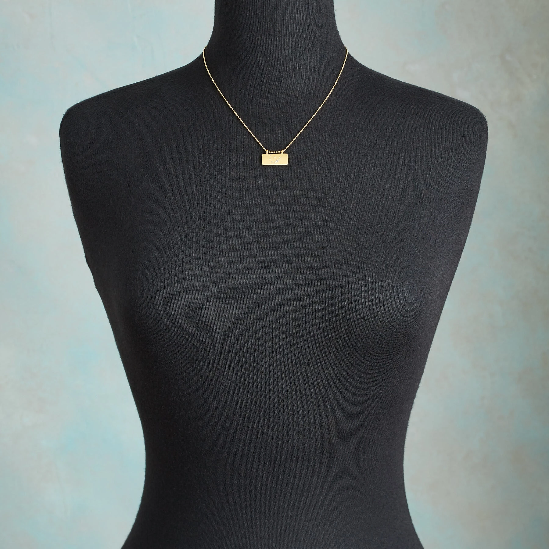 Our sleek 18kt gold-plated pendant necklace hosts a straightforward expression of your astrological birth sign in sparking white topaz. 18kt gold-plated ball chain and spring ring clasp. Exclusive. 18″L.