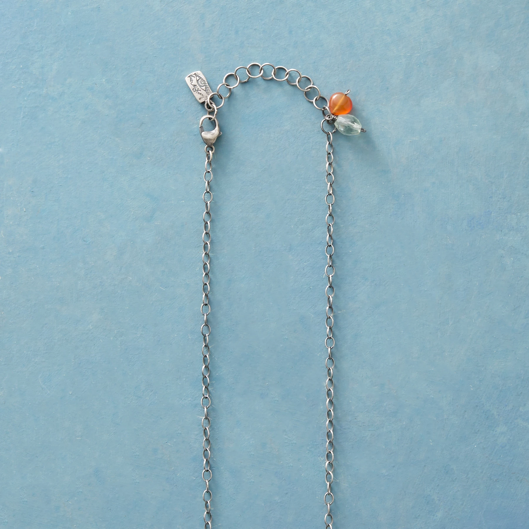 Inspired by her gypsy horse, Zephyr, Jes MaHarry crafts a necklace that salutes the wild spirit in all of us. The handcarved turquoise horse is strung on a sterling silver chain accented with coral, lapis, carnelian, citrine, aquamarine and turquoise along with a single sterling leaf. Lobster clasp. Handmade in USA. Exclusive. 18-1/2″ to 20-1/2″L, 7/8″ drop.