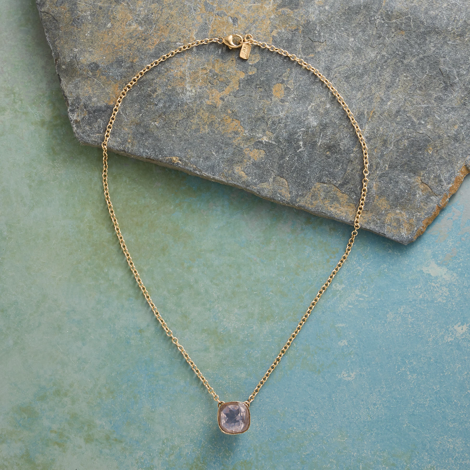 A deep cut of lilac quartz merits Jes MaHarry’s etchings-emblazoned bezel, the word “love” among her inscriptions. Handmade in USA of 14kt gold. Lobster clasp. Exclusive. 16-1/2″L, 1/2″ drop.