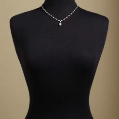 Sterling silver lotus flowers appears in bloom, the blossoms formed of a lustrous white pearl. A trail of seed pearls linked with twisted sterling silver wire and a lobster clasp. Handcrafted with cultured pearls. 15-3/4″ to 17-3/4″L.