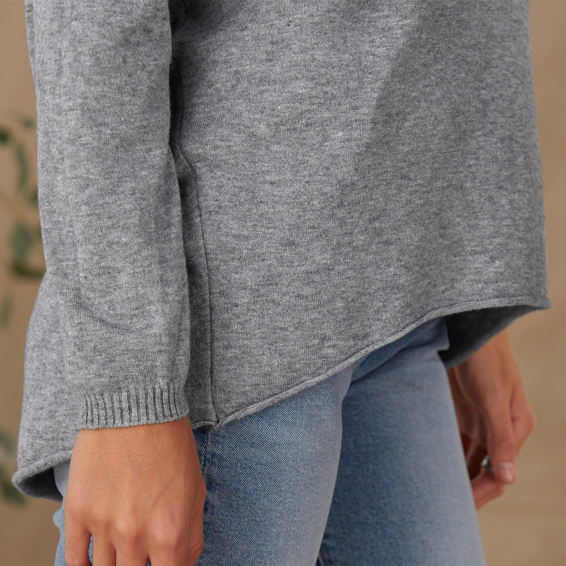 A flattering, fluid knit with a touch of cashmere drapes like a dream in this lightweight sweater with dropped shoulders, V-neck and arched, hi-lo hem. Viscose/modal/spandex/cashmere. Hand wash. Italy. Sizes XS (2), S (4 to 6), M (8 to 10), L (12 to 14), XL (16). Front approx. 26″L.