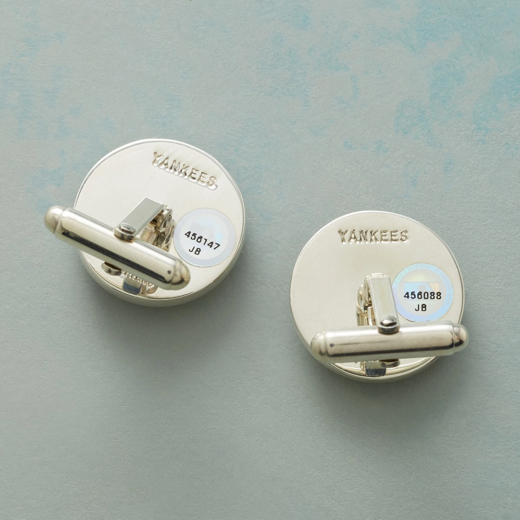 With unmistakable red stitching and bearing the small scuffs that come with game play, these sterling silver cufflinks, fashioned from an authentic MLB baseball, are sure to be a home run. Hallmarked with team name on back. Gift box included. Specify team of choice.