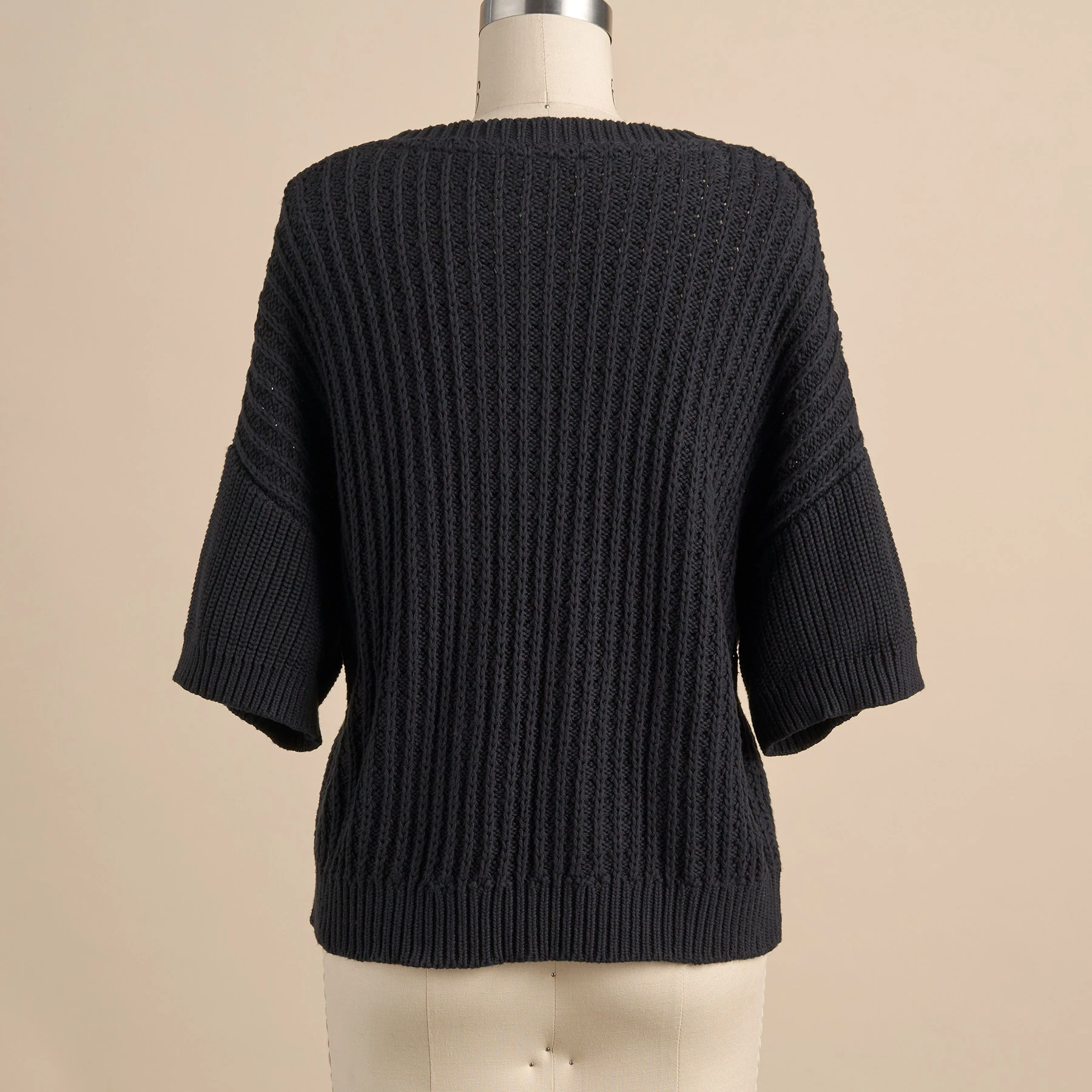 Relaxed, textured short sleeve sweater in chunky stitching featuring transfer rib detailing with pointellle. Rib trim. Cotton. Hand wash. Imported. Exclusive. Sizes XS (0β2), S (4β6), M (8β10), L (12β14), XL (16β18), XXL (20β22). Approx. 21″l.