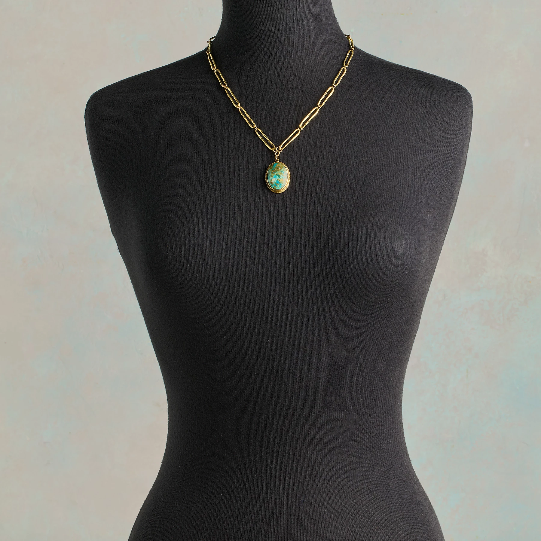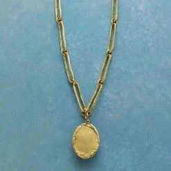 A Peruvian opal, each stone one of a kind, conjures distant lands in this handmade 18kt gold necklace by Jes MaHarry. Subtle texture graces the long links and bezel, making for a necklace equal in character and beauty. 18kt gold lobster clasp. Made in USA. Exclusive. 20″ to 21-1/4″ Pendant, 1-1/8″ dia. Links 1″l.