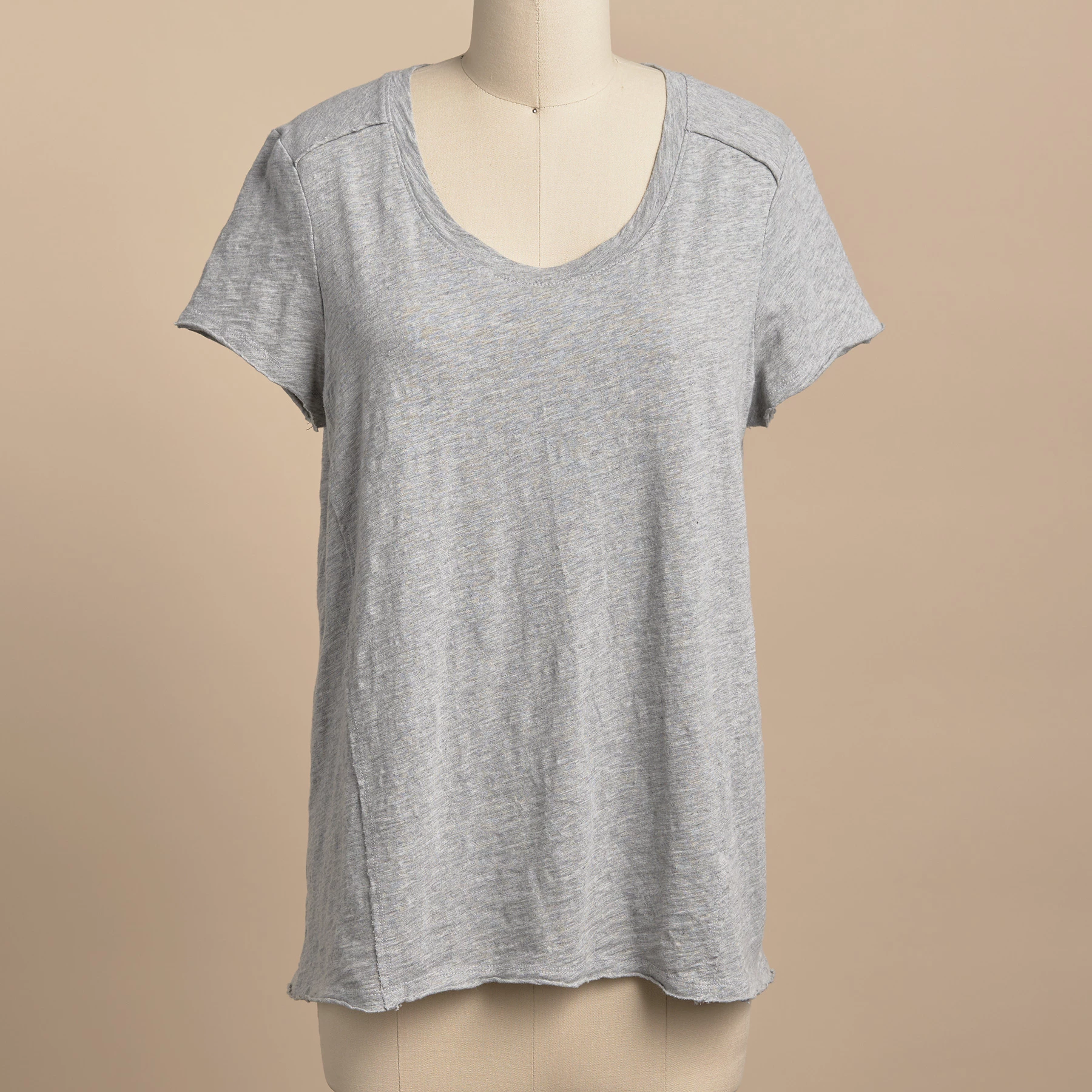 Soft, scoop neck tee with raw-edge seaming, shirring and hi-lo, crescent-shaped hemline. Cotton. Machine wash. Imported. Exclusive. Sizes XXS (00), XS (0–2), S (4–6), M (8–10), L (12–14), XL (16–18). Approx. 23″l.