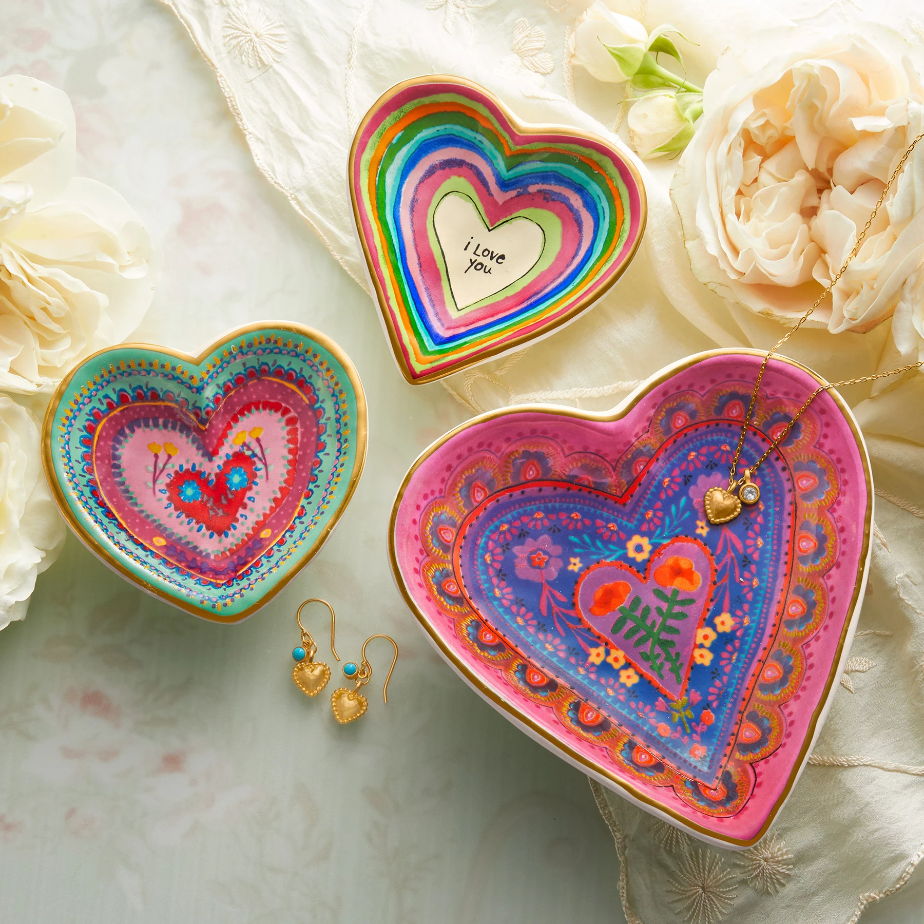 Give the gift of enduring love and friendship with this sweet heart-shaped treasure holder. Perfect for rings, trinkets and all that is dear. Glazed terra cotta. Imported. 3″W x 3-1/4″D x 3/4″H.