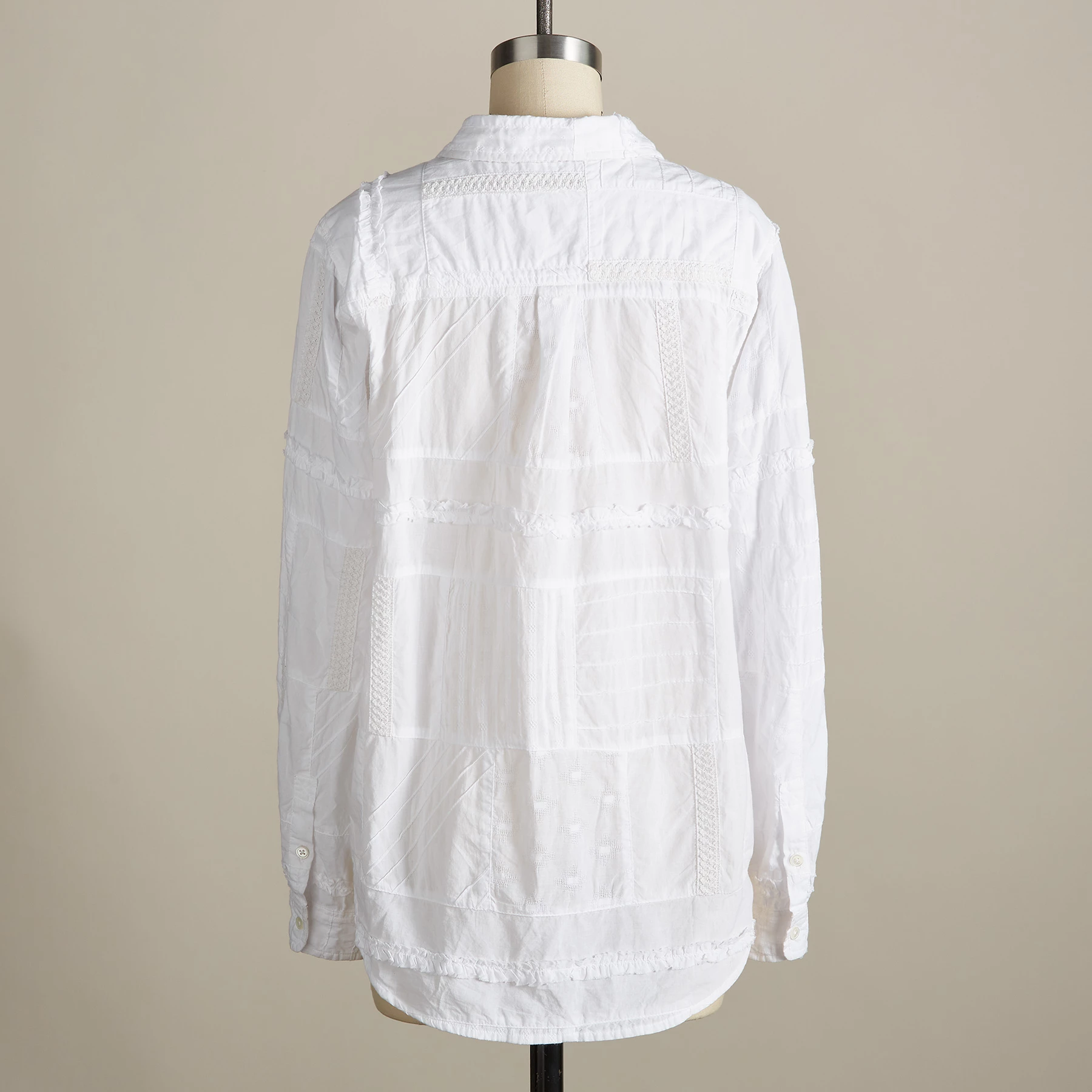 A delightful patchwork of textures embellish this intriguing shirt, a creative mix of dot, pintuck, ruffle and embroidery details. Cotton. Machine wash. Imported. Sizes XS (4), S (6), M (8ā10), L (12), XL (14), XXL (16). Approx. 26-3/4″l.
