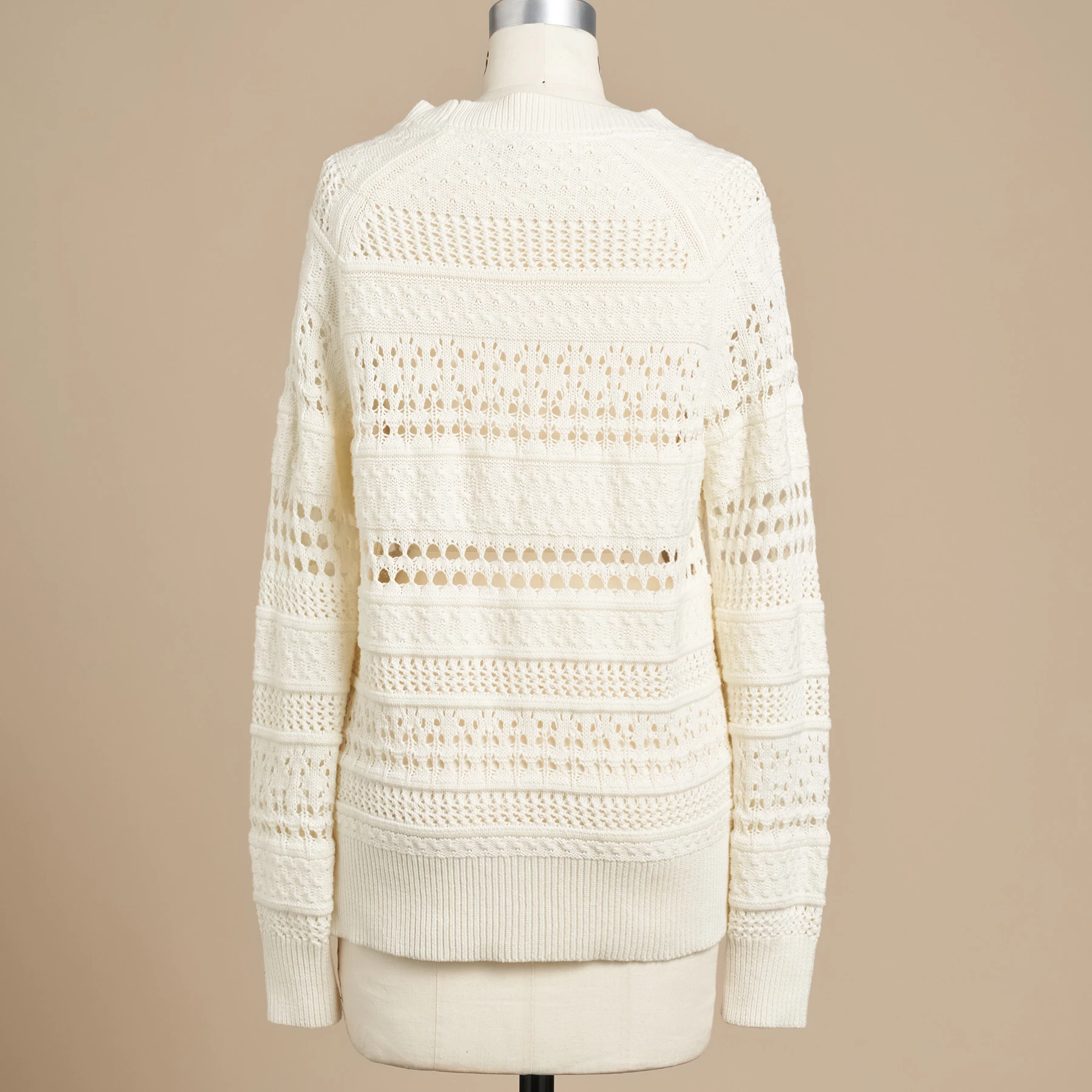 An airy and open, mixed-stitch cardigan with twill tape braided through the body of the sweater for marvelous texture. With rib trim and wooden buttons. Relaxed, easy fit. Cotton/acrylic. Hand wash. Imported. Exclusive. Sizes XXS (00), XS (0–2), S (4–6), M (8–10), L (12–14), XL (16–18). Approx. 22-1/2″l.