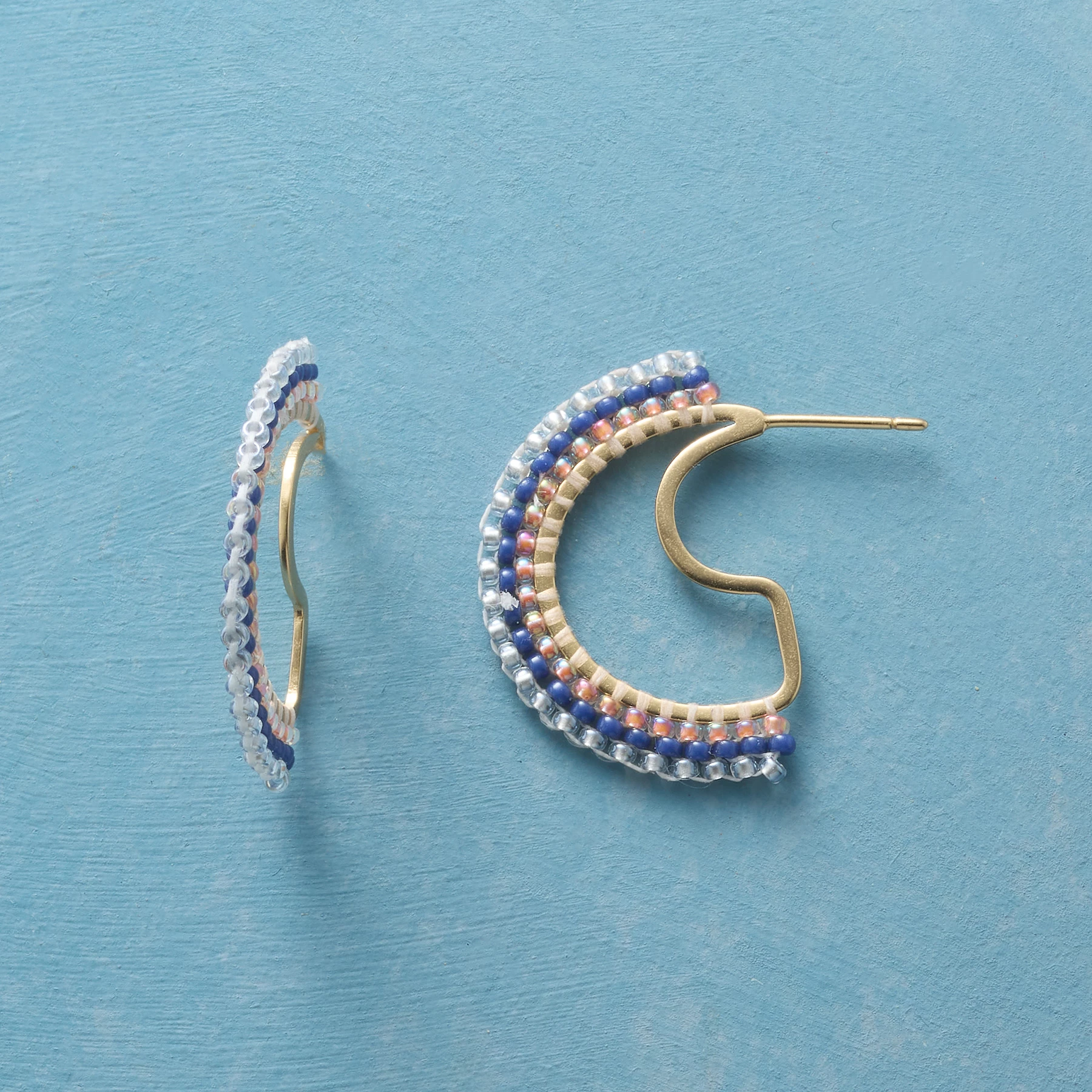 Wired by hand to 14kt gold-plated frames, rows of tiny glass beads lap like waves on the sand. Posts. 1″L.